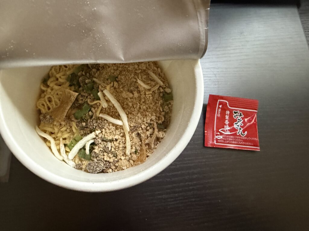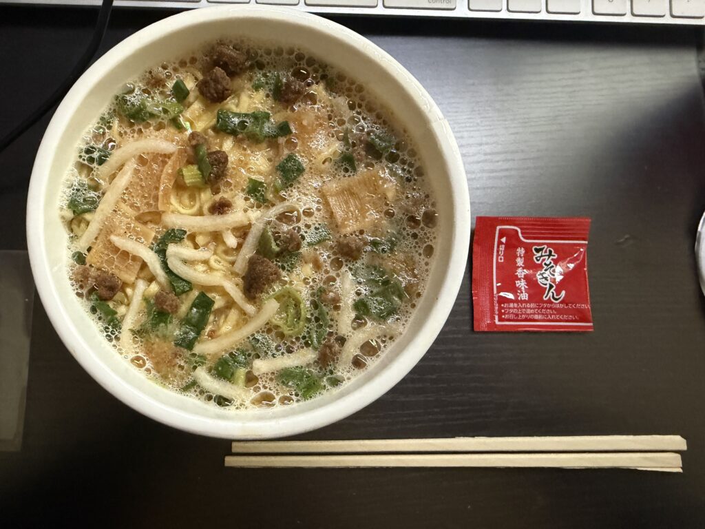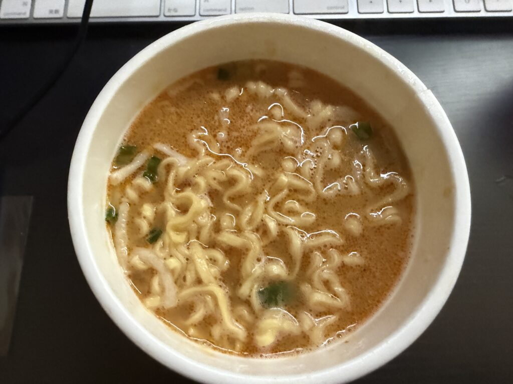 前に日清のカップヌードル味噌味がありましたが、私個人の感想では味噌感が強くてしょっぱく感じたので、みそきんはそこのスープのバランス感覚がいいと感じました。